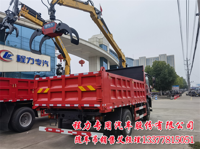 液壓剪、液壓鉗配豪曼隨車吊帶夾具帶抓木機,抓石頭抓水泥管道夾竹子抓木材抓鐵隨車人之隨車抓夾生活垃圾鋼管甘蔗和廢品,4.4米軸距,4.7米貨廂帶自卸,大家有沒有見過隨車吊上安裝的有夾木夾具,夾鐵夾具之類的,今天我們要說的就是這款車型,他叫抓斗式垃圾機。