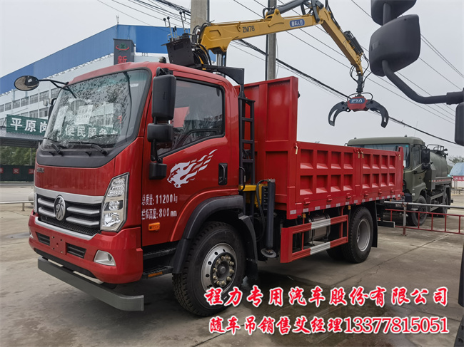 重汽王牌隨車人隨車抓斗式垃圾車貨廂有3.9米,4.2米4.5米5.1米及6米的自卸車廂,吊機配3.2噸4噸5噸6.3噸和8噸可吊可抓式兩用折臂或只可抓式夾具,