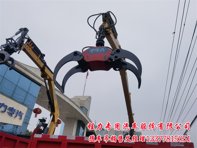 可吊可夾可卸的隨車吊選多功能重汽王牌3+2抓具抓木頭抱竹子隨車人隨車抓斗式垃圾車,帶抓具翹頭,選卷揚機3.6米和5.1米單排,3900/4200mm軸距,中控門鎖,空調(diào),多功能方向盤;濰柴190馬力發(fā)動機,陜齒8檔變速箱。