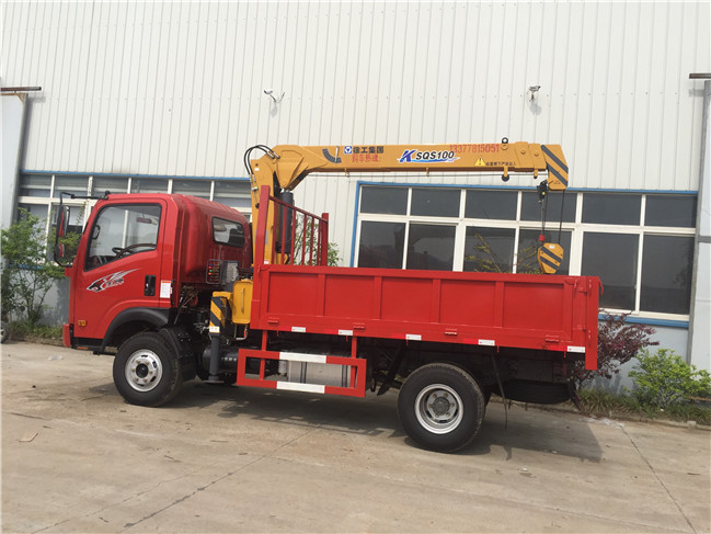 藍(lán)牌4噸5噸隨車吊能吊多高:如果用戶回家后,吊機短了,可以加一節(jié)副臂。