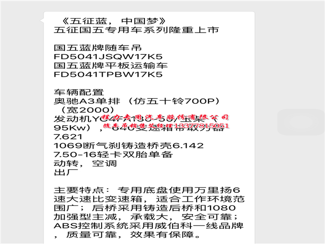 底盤型號:FD5041JSQW17K5 |