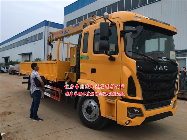 江淮隨車吊6.3噸5噸4噸格爾發(fā)K5半高頂駕駛室,國五隨車吊濰柴160馬力,法士特8檔變速箱,900鋼絲胎,245+75+7+4,電動玻璃,江淮隨車起重運輸車有空調(diào),行車記錄儀,ABS,氣囊座椅,電動翻轉(zhuǎn),中控鎖,多功能隨車吊帶自卸。