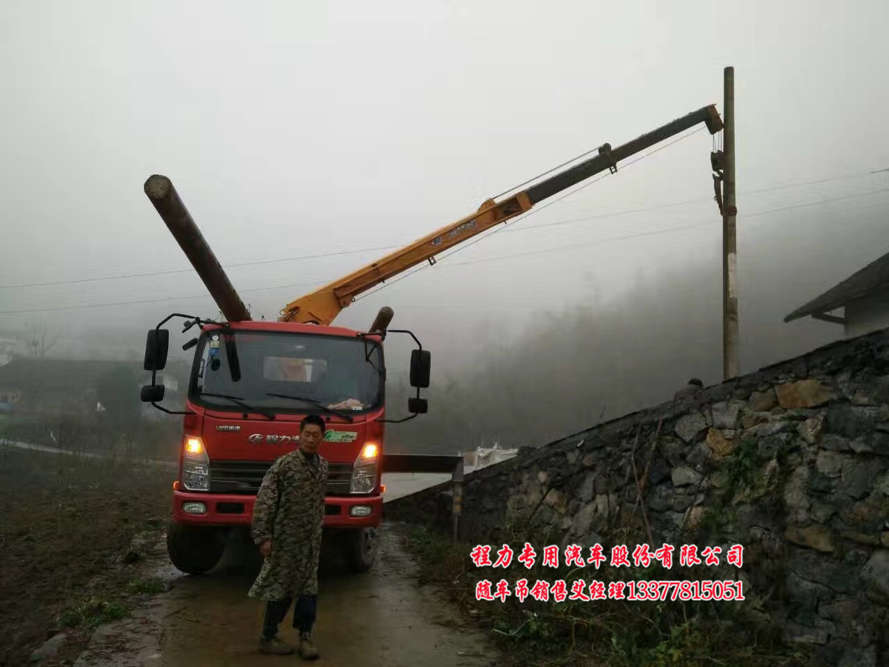藍牌重汽王牌隨車吊價格-拉電桿價格不同,因為大廂要加固: