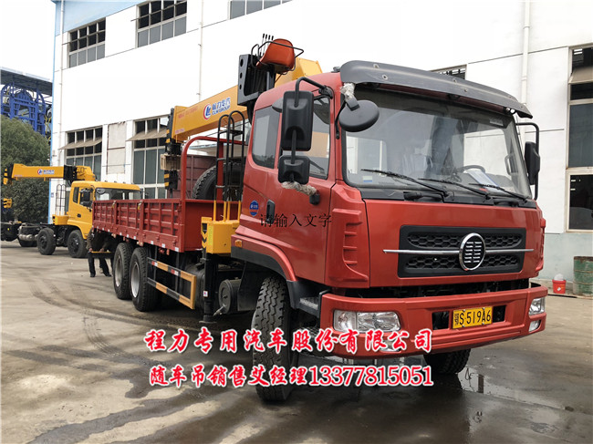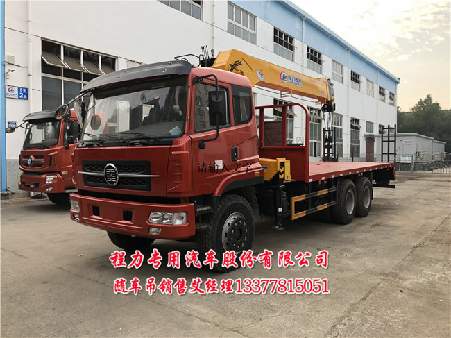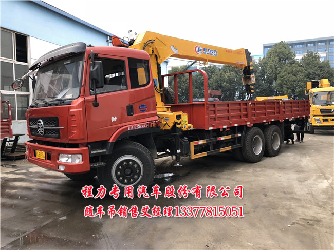 可以拉挖機(jī)楚風(fēng)后雙橋隨車吊配12噸程力直臂,15.3米臂長