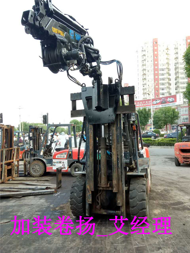 4噸叉車吊_4噸叉車飛臂吊_4噸叉車隨車吊3噸以上的叉車,可加裝高 空作業(yè)欄,卷揚,加長臂等等 。