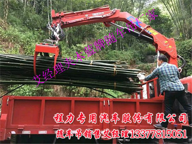 任何一款藍(lán)牌隨車吊車型或黃牌隨車吊都可以加裝夾木或夾竹夾具,360度旋轉(zhuǎn),但必須要配折臂吊機(jī).