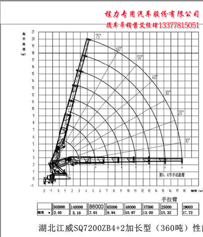 SQ7200江威隨車吊曲線圖,就是是180吊機的性能,在幾米之內(nèi)吊幾噸貨