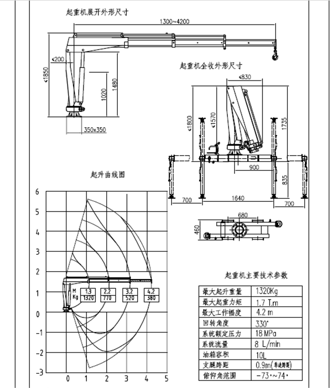 小型藍(lán)牌隨車吊1.3噸吊機(jī)平面圖
