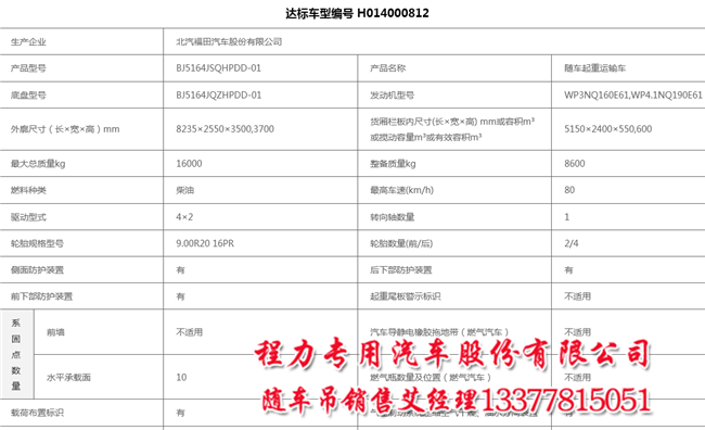 底盤型號:BJ5164JSQHPDD-01 額定質(zhì)量:7205