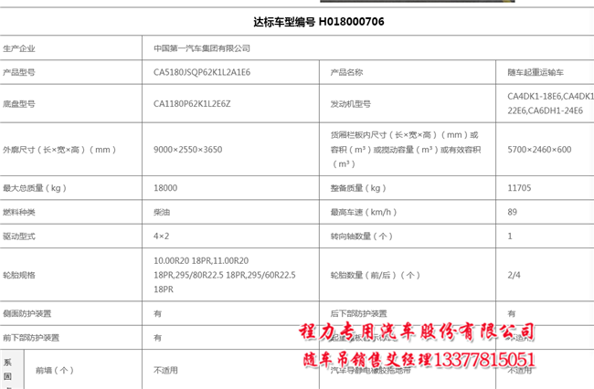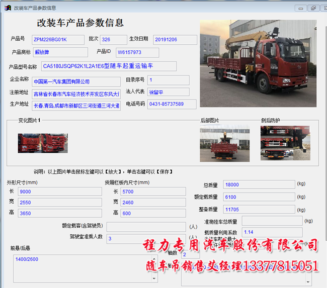 6.3噸8噸解放隨車吊公告查詢圖