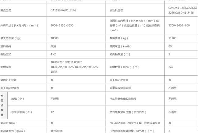 底盤型號(hào):CA5180JSQP62K1L2A1E6 額定質(zhì)量:6100