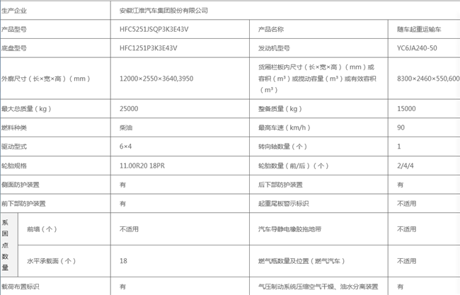 底盤型號:HFC5251JSQP3K3E43V 額定質(zhì)量:9805