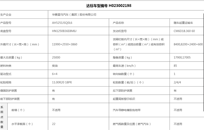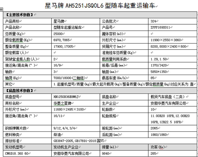 底盤型號:AH5251JSQ0L6 額定質量:6970