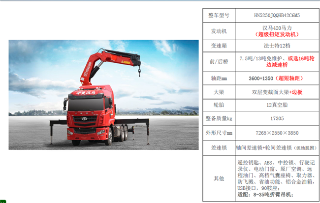 牽引頭華菱隨車吊配置  上圖     16噸-38噸
