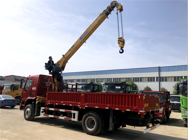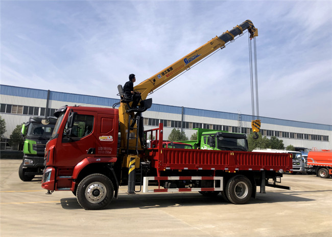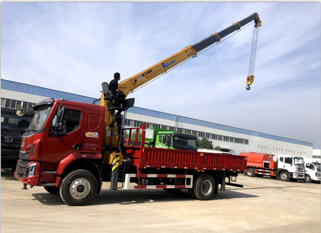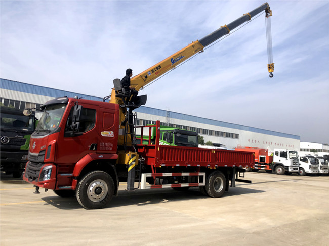 10噸G型乘龍隨車吊自調(diào)臂、免維護(hù)電池、160L鐵油箱,