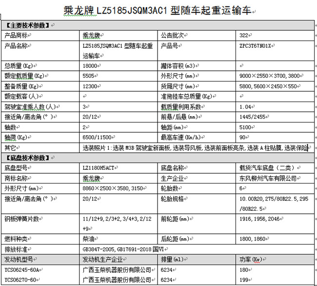 底盤型號:LZ5185JSQM3AC1 額定質(zhì)量:5505
